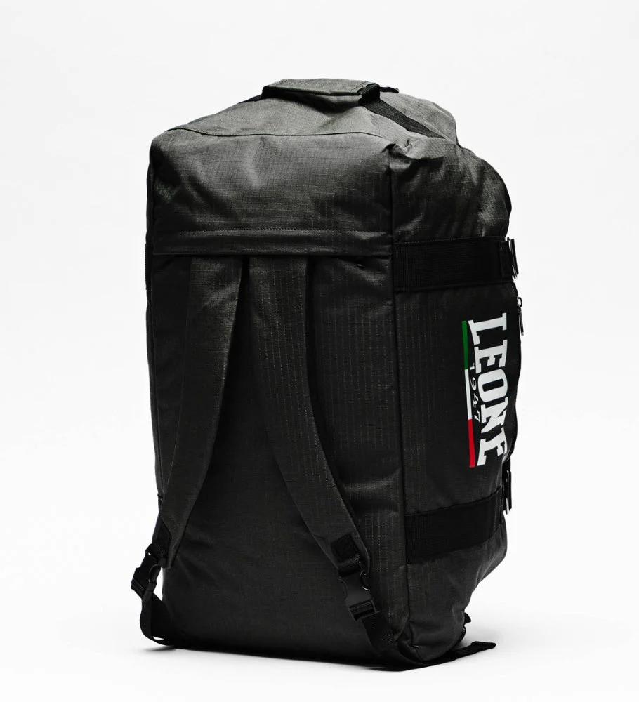Sac de sport noir avec plusieurs poches zippées par Leone. Ce sac de sport a une capacité de 70 litres, ce qui vous donne suffisamment d’espace pour transporter vos gants de boxe et vos protège-tibias. Le sac de sport est doté d’une poignée d’épaule et peut également être porté comme un sac à dos.